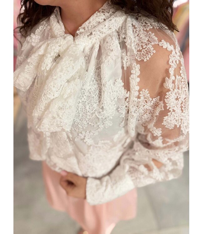 Beoordeel Blouse Lace Bow White
