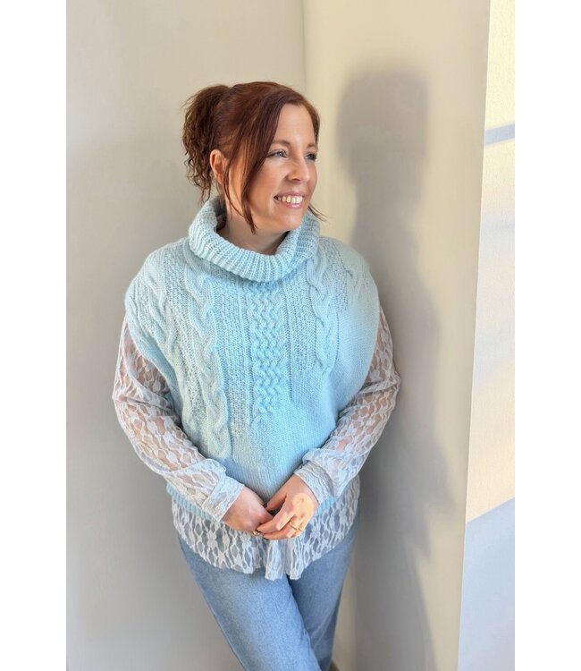 Debardeur met rolkraag en kabelmotief.